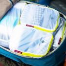 Roll it. Maximize space and keep things nice and organized with Pack-It Cubes. Use them to organize t-shirts, pants, and undergarments. Once you arrive, slip them in your hotel drawers to keep your stuff nice and clean.