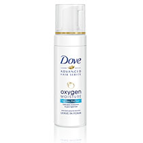 Dove Oxygen Moisture Leave in Foam delicately moisturizes your hair while providing a light, flexible hold. And while it moisturizes, it adds natural volume to your hair to give it bounce. For best results, experience the Oxyfusion Technology with the full line of Dove Oxygen Moisture products.