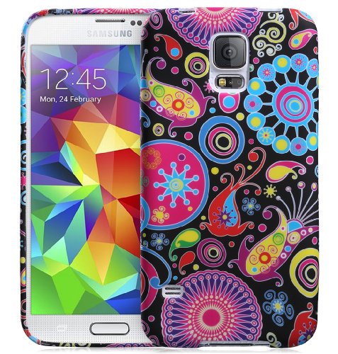 Attractive abstract graphics layered with rubberized finish gives you extra grip for your Samsung Galaxy S5 while adding a uniquely stylish look to your device.