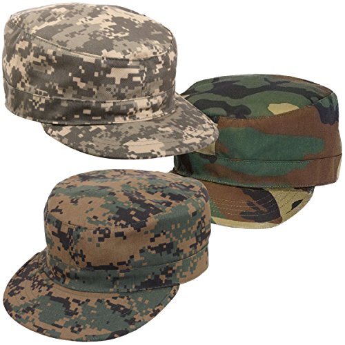 These fashionable fatigue hats are made to military standards and feature popular camouflage patterns. Made out of 55% cotton and 45% polyester they are durable and rugged enough to last through extended use and abuse. Also featured is a hook and loop back to adjust the cap for a good fit.