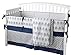 Encourage eye tracking and sound perception skills with this Dove Gray Chevron Musical Mobile by Trend Lab. Wide banded mobile canopy in dove gray and white chevron stripe and white trim. Slide cover is coordinating crisp white. Four adorable stuffed gray elephants are suspended from decorative white ribbon and slowly rotate to Brahms' Lullaby. Mobile easily attaches to most cribs. Mobile measures approximately 18" tall by 10" wide. This mobile coordinates with the Ombre Gray collection by Trend Lab.