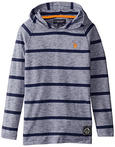 U.S. Polo Assn. Little Boys' Space Dyed Pique Hooded Pullover, Classic Navy, 5/6;