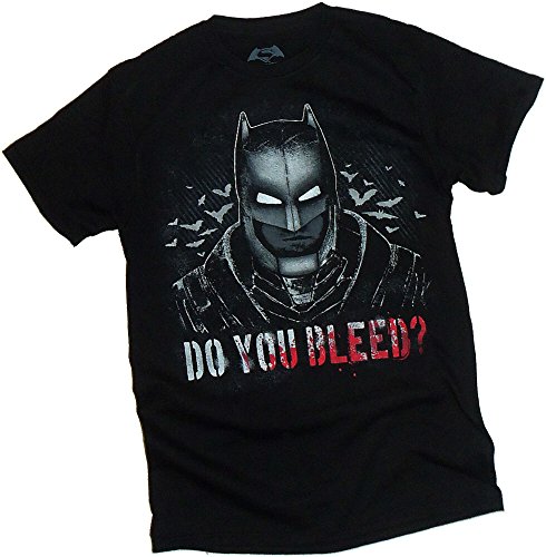 This adult Batman v Superman: Dawn Of Justice T-shirt is an officially licensed product from DC Comics. The shirt features our cool "Do You Bleed?" design printed on 100% cotton.