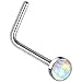 - 20G Lotus Synthetic Opal Sparkle Filigree Icon L-Shaped Nose Ring (Sold Individually)